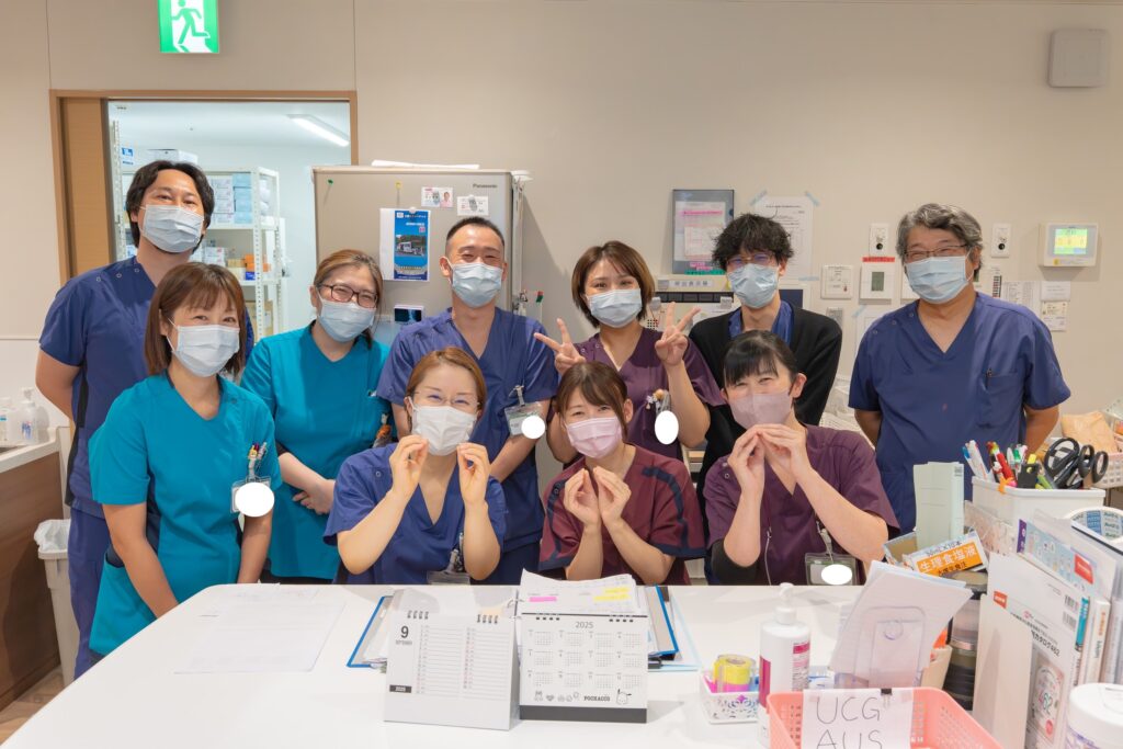 医師、看護師、臨床工学技士、事務、介護職員がチーム一丸となり、互いに支え合いながら温かい雰囲気の中で働いています。